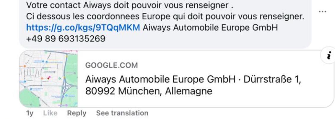 Ob bereits rechtliche Schritte eingeleitet worden sind wäre interessant zu wissen. Einzige verwehrtbare Information aus der Facebook Gruppe “Aiways technical support” ist, dass ein Betroffener vorort in München war und leere Geschäftsräume vorgefunden hat und daraufhin bei der Polizei eine Anzeige aufgegeben hat.