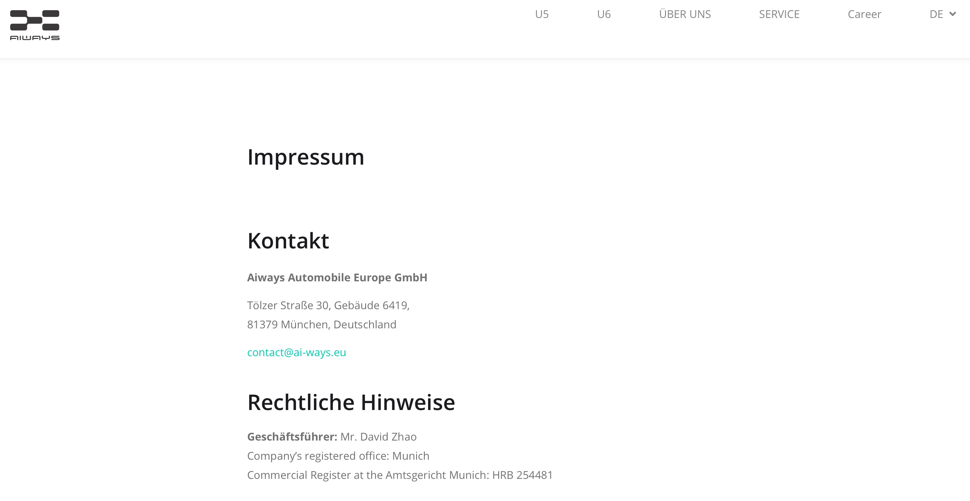 Mails an Aiways Kundensupport: Anscheinend hat Aiways den Mailserver angefahren. Mails an contact@ai-ways.eu oder den neuen GF DAVID.ZHAO@ai-ways.eu kommen nicht mehr als “Unzustellbar” zurück. Sie werden demnach zumindest ausgeliefert. Wo sie landen und ob sie gelesen werden ist wieder eine andere Frage. Ich schicke seit Wochen Mailanfragen, die aber nicht beantwortet werden. Ein "telnet http://www.ai-ways.eu 25” wird positiv beantwortet. Hier läuft demnach ein smtp-Dienst. Gibt man einen nicht bekannten Empfänger an, wird dies erkannt und kommt mit Fehler zurück.