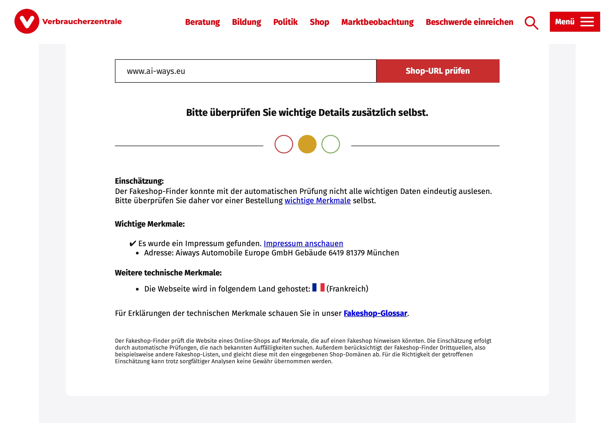 Die Prüfung via Verbraucherzentrale ergibt (Anhang)