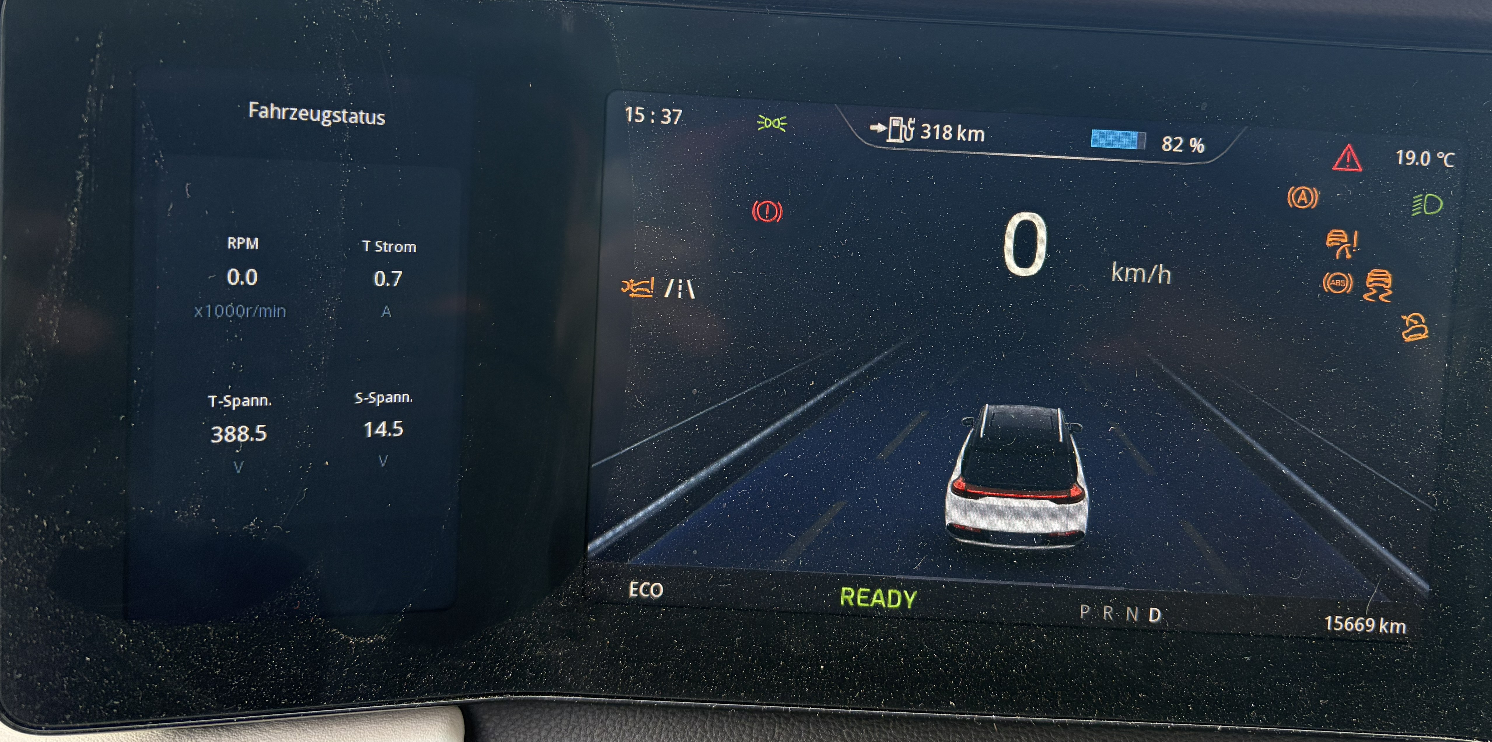 Zitat von woljo am 7. März 2026, 09:30 UhrAm besten messen Sie die Batteriespannung. Das Ab- und Wiederanschließen der Batterie hilft nicht, wenn die Spannung zu niedrig ist. Sie können die Batteriespannung auch im linken Display ablesen. Schließen Sie die Türen und wählen Sie den entsprechenden Informationsbildschirm. Beim Betätigen des Bremspedals wird zunächst die Batteriespannung angezeigt. Anschließend schalten sich die Hochspannungsrelais ein und der Ladevorgang über die Hauptbatterie beginnt. Die Spannung steigt leicht an. Ist die Spannung zu niedrig, schalten sich die Relais wieder ab, und alle Fehlermeldungen bleiben sichtbar. Liegt die Batteriespannung bei etwa 12 V oder darunter, könnte dieses Problem vorliegen. Ist kein Fehler an der Batterie vorhanden, beträgt die Spannung 14,5 V. Wenn Sie die Fahrt fortsetzen möchten, empfiehlt sich die Anschaffung eines Starthilfekabels; beispielsweise bietet Noco gute Geräte an.